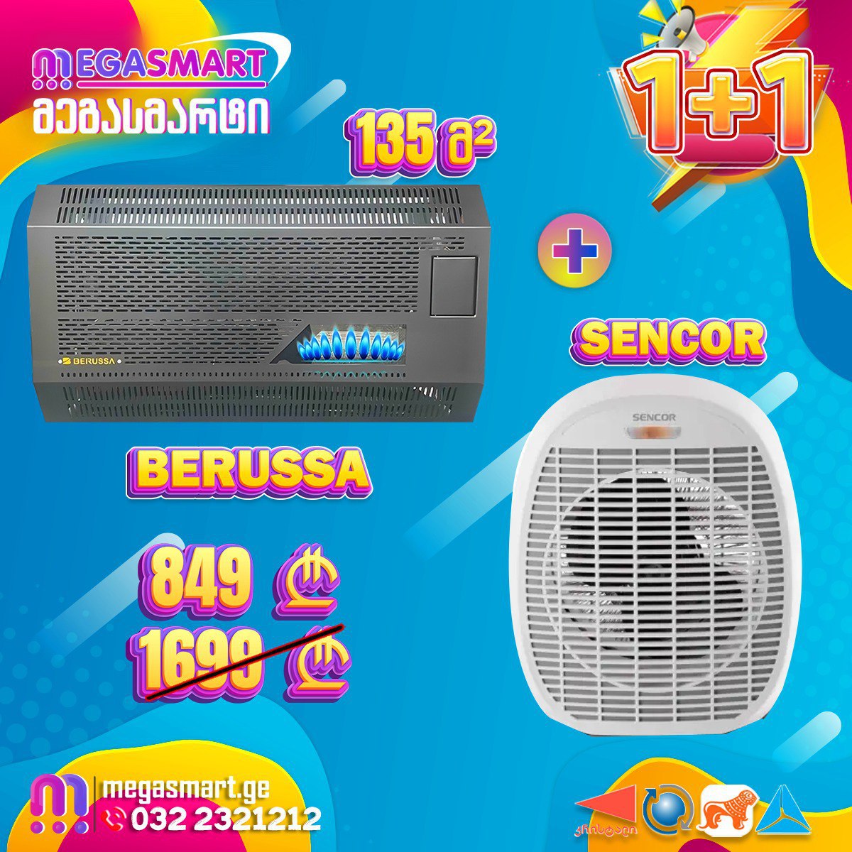გაზის გამათბობელი 135მ² BERUSSA DT12BLACK საჩუქრად SENCOR SFH 7017WH FAN HEATER